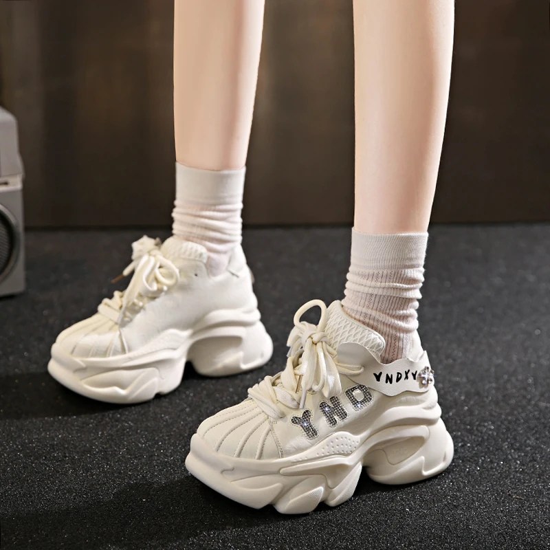 8CM Microfiber Leather Bling Sneakers New Autumn Thick Soled Sports Dad Shoes Diamond Breathable Casual Chunky Shoes