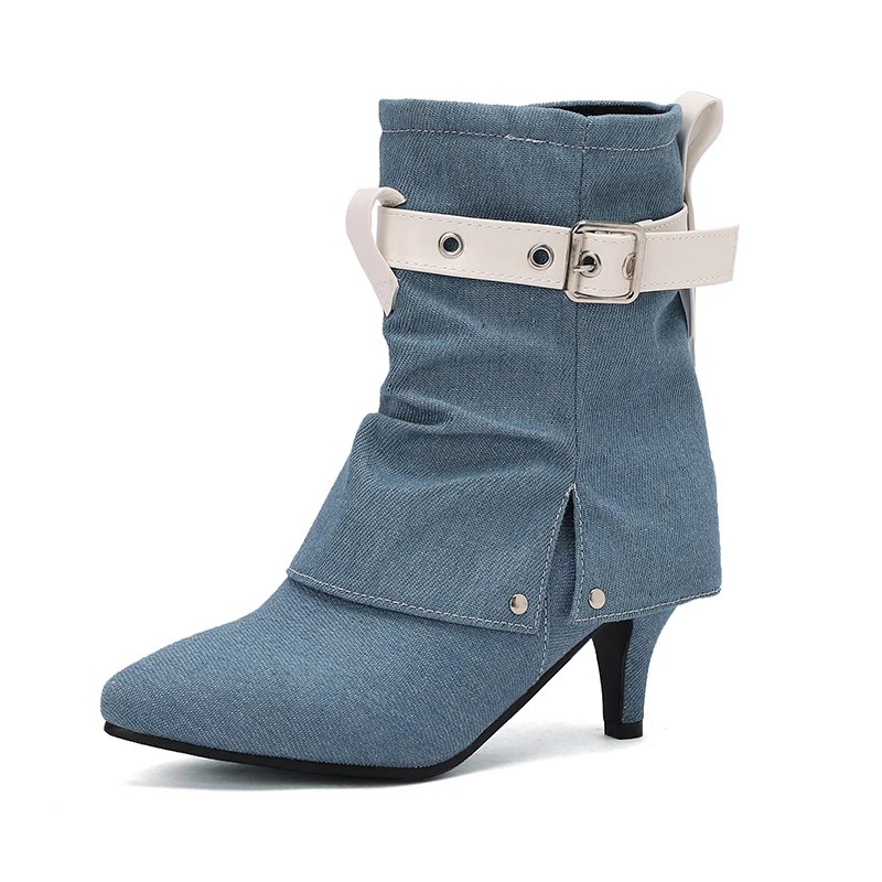 Ankle Boots for Women’s 2024 High Heels Shoes Turndown Belt Buckle Decor Autumn Winter Footwear