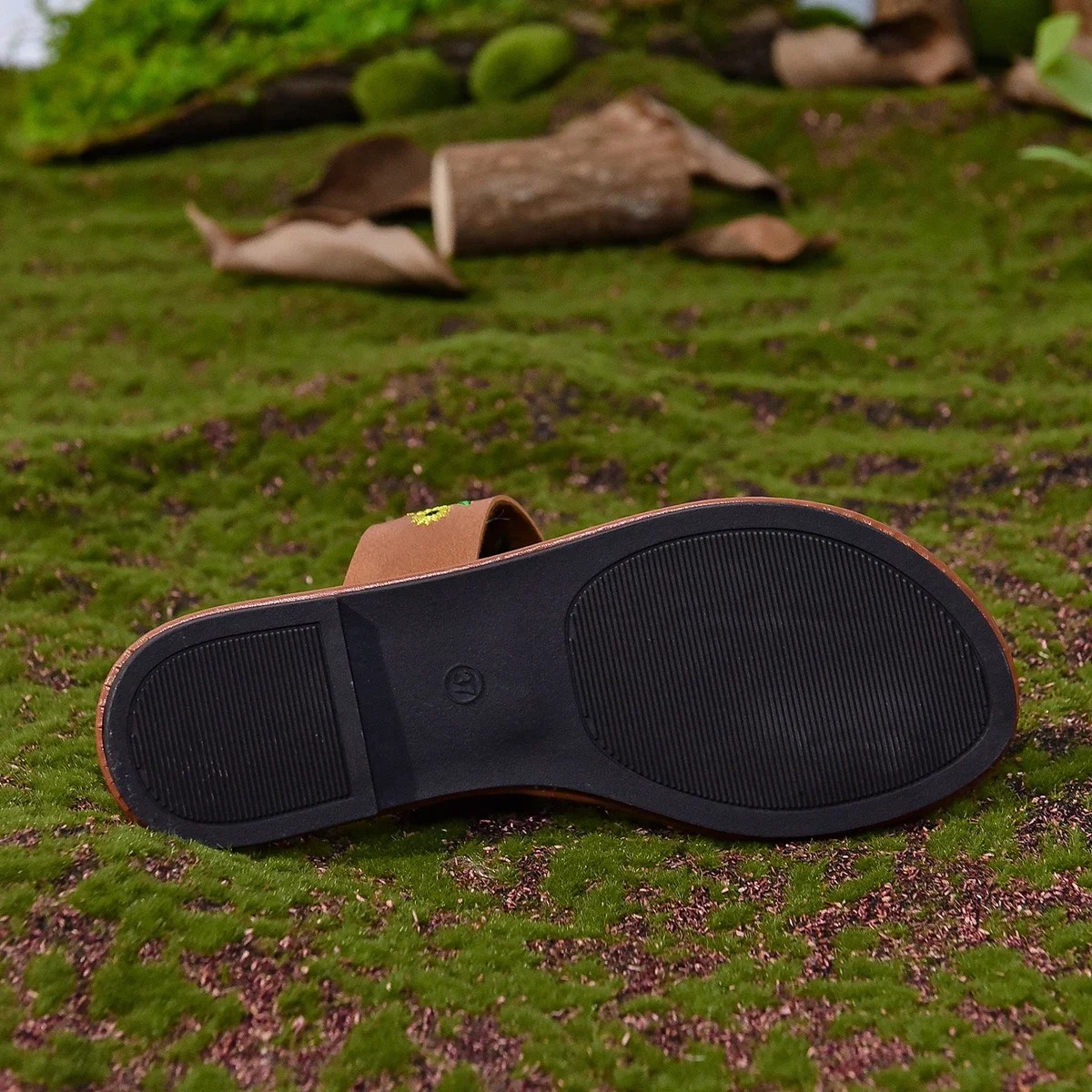 Brown Embroidered Chinese Style Women’s Sandals Toe Flat Slippers Casual Versatile Beach Shoes Comfortable Footwear