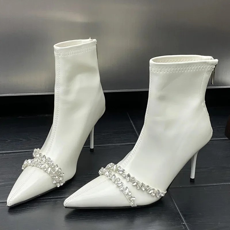 Eilyken CRYSTAL Diamond Thin High Heels Women Ankle Boots Street Style Fashion Pointed Toe Banquet Party Zipper Shoes