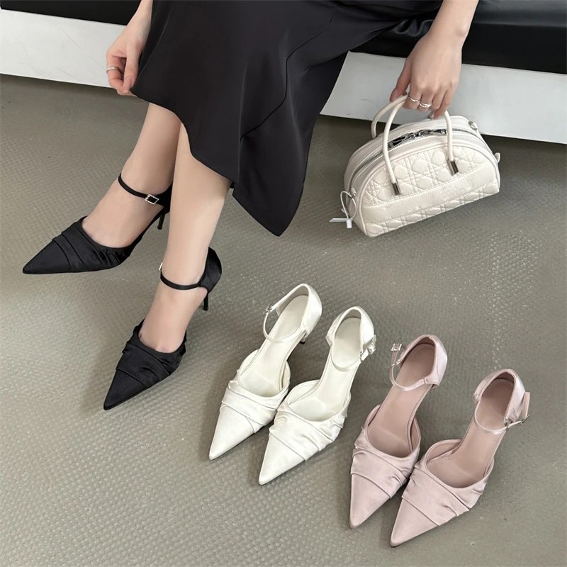 Eilyken Sexy Satin Pointed Toe Buckle Strap Women Pumps Mules Thin High Heels Shoes Elegant Party Stripper Zapatos De Mujer