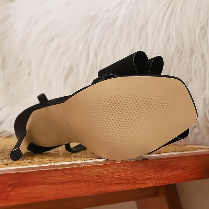 Eilyken Summer Fashion Silk Butterfly knot Sandals Women Sexy Square Toe Buckle Strap Stiletto Heels Shoes Zapatos Mujer