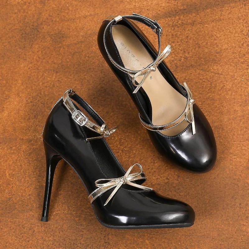 Be the first to review “Novelty Golden Bow Decoration Sexy High Heels Foe Women High Quality Luxury Designer Pumps Elegant Round Toe Ankle Strap Heels” Cancel reply